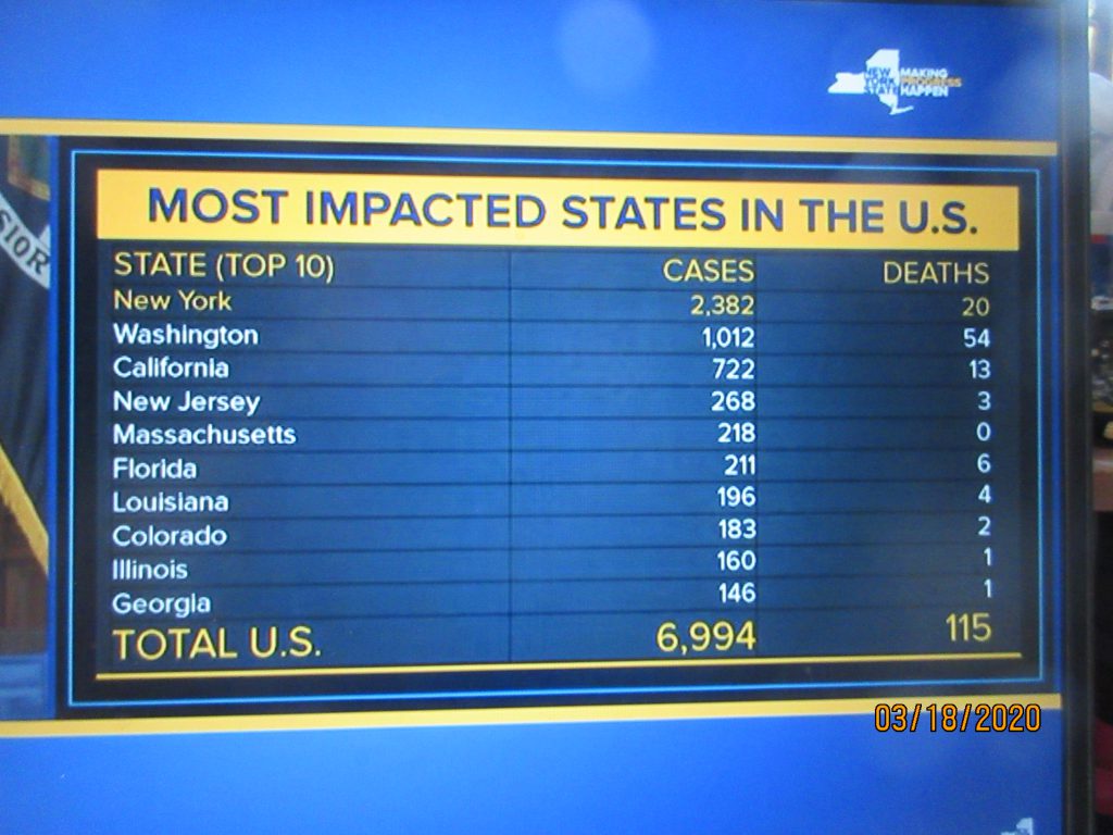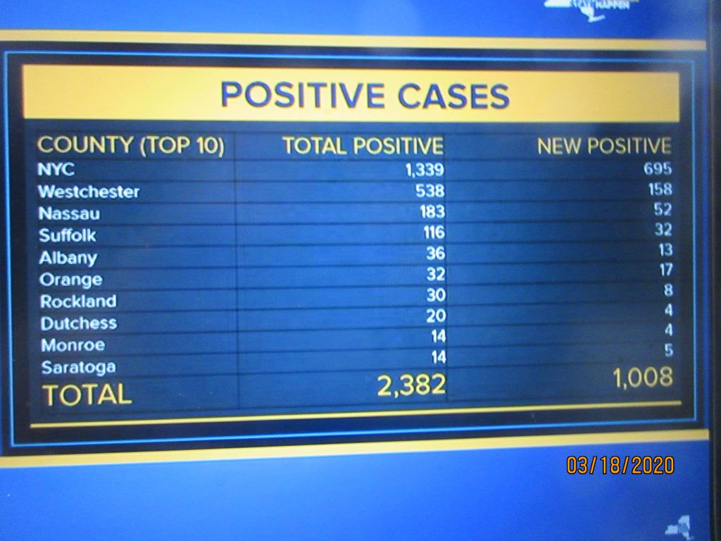 Confirms 1,008 Additional Coronavirus Cases in New York State – Bringing Statewide Total to 2,382; New Cases in 20 Counties