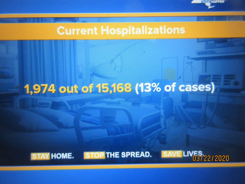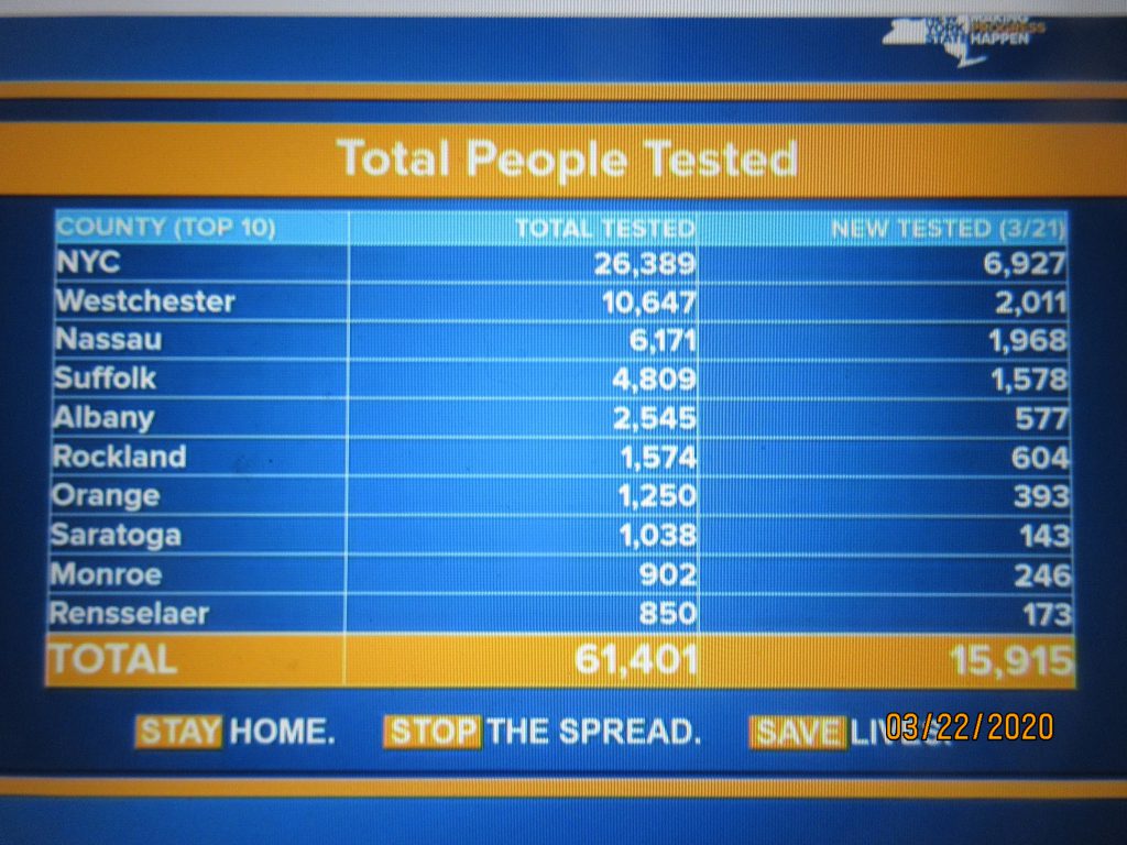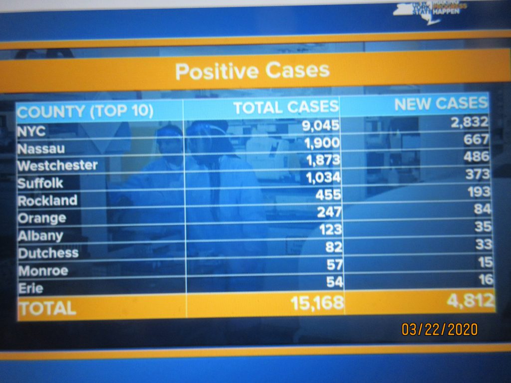 Finally, the Governor confirmed 4,812 additional cases of novel coronavirus, bringing the statewide total to 15,168 confirmed cases in New York State. Of the 15,168 total individuals who tested positive for the virus, the geographic breakdown is as follows: