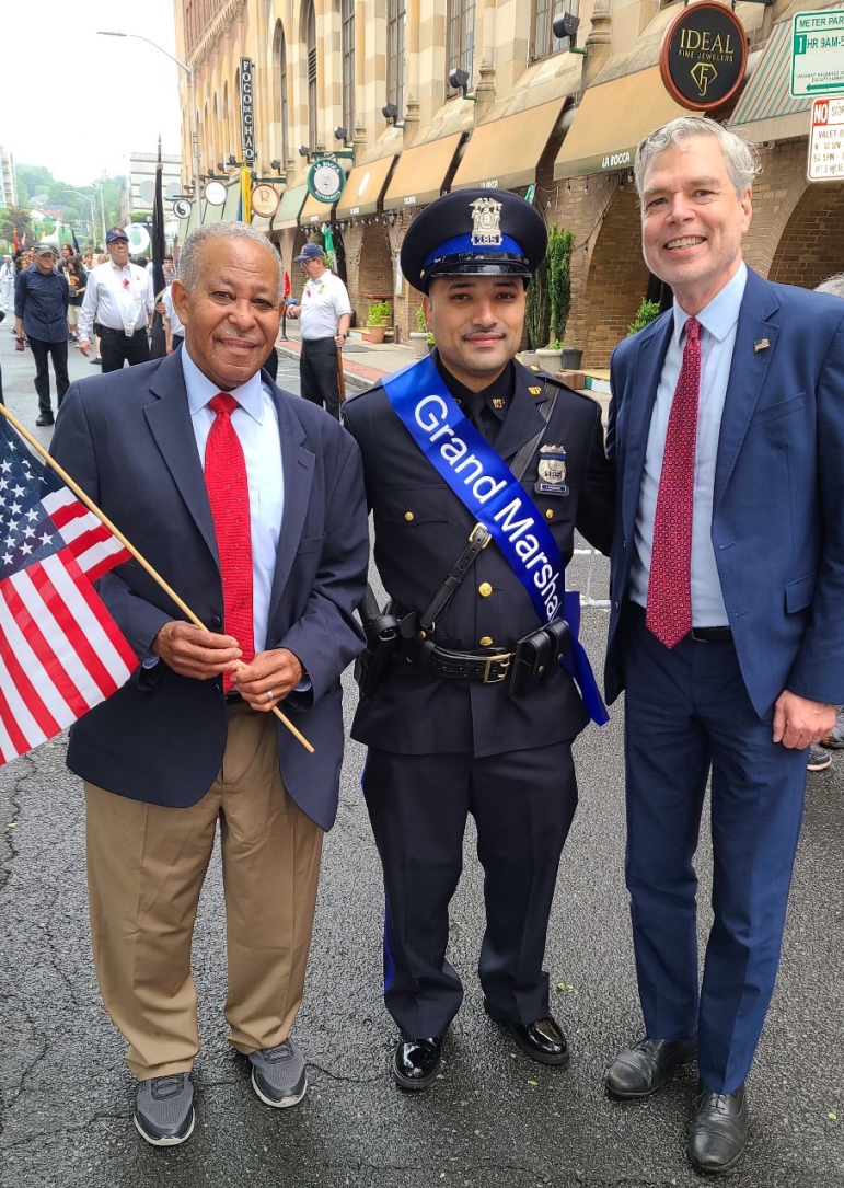 On Monday, May 27, I had the privilege of attending the White Plains Memorial Day Parade. I was joined by White Plains Mayor Tom Roach and Grand Marshal Jonathon Manzueta,(PHOTO, RIGHT) a United States Navy veteran and White Plains Police Officer. We also paid tribute to retired veteran Harry O. Bright Jr. (deceased), who was honored for his military service and his humanitarian work throughout the world.
