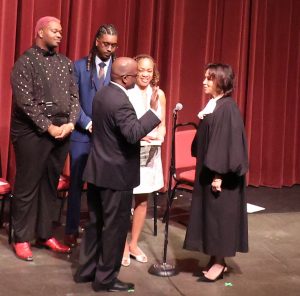 County Executive Kenneth Jenkins  with his wife and two of their sons as Mr. Jenkins takes the oath of office being sworn in as County Executive by The Honorable Kathy E. Davidson (WPCNR PHOTO)