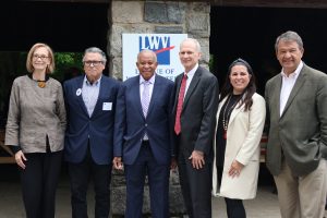 A host of colleagues joined the meeting to honor Mr Boyin, from right, Congressman George Latimer; White Plains Councilwoman, Jen Puja; Councilman Justin Brash; Mr. Boykin and President of the League of Women Voters White Plains, Alan Cass.