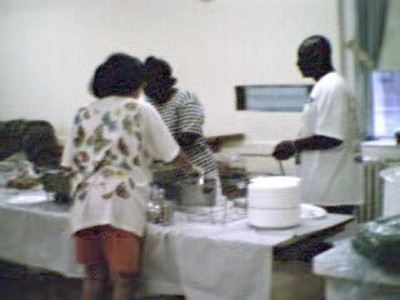 | Trinity Lutheran Church, Bethel Baptist Church and Allen A M E Churches served 600 persons a day last week, feeding residents of Winbrook who could not cook due to severed gasline. The scene Thursday evening at 7 PM at Bethel Baptist Church. Photo by WPCNR. |