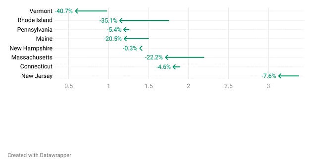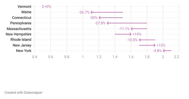 Welcome to the Northeastern edition of Outbreak Outlook! It is only available to paid subscribers. If you wish to become a paid subscriber and access region-specific information, please click the Subscribe now button below. Thanks for reading! -Caitlin Respiratory DiseasesILIWith flu season behind us, very few people are visiting the doctor, the emergency room, or being hospitalized for influenza or influenza-like illness. There were very low rates of outpatient visits for influenza-like illness in the Northeast, with Vermont winning the prize for lowest reported rate at 0.6% of all outpatient visits for ILI. New Jersey has the highest outpatient ILI rate in the region, which at 3.1% is just above that 2.9% cut-off we use nationally to mark the beginning and end of flu season. They saw a notable decrease this week, however, and I expect it to continue to move in that direction in the coming weeks. Emergency department visits for flu are minimal in the Northeast, with most states reporting that less than half of a percent of ED visits were for flu this past week. At the same time, hospitalizations rates for influenza are also very low across the Northeast, with most states reporting 1 or fewer influenza-related hospitalizations per 100,000 population. COVID-19The Covid-19 burden is minimal right now – enjoy the lull. Wastewater concentrations remain very low, around where they were last June. Emergency department visits for Covid-19 are extremely low in the Northeast, accounting for a tiny fraction (less than one third of one percent) of all ED visits. Hospitalizations are similarly low, with all states reporting fewer than 2 new admissions per 100,000 population. Stomach BugsNorovirus is really hanging on. Test positivity is a little over 12%, about where it has been for the past several weeks. As such, I will repeat the same advice I’ve given for the past several weeks: keep washing those hands. Food recallsThe following foods are being recalled because they are contaminated. Please check your cupboards and throw out any of these items: New