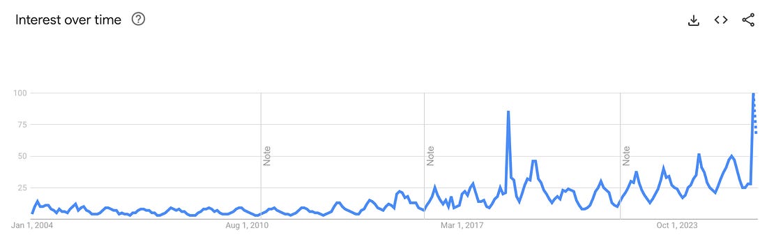 Americans googling “glyphosate” in the past 20 years, with a slow increase over time and, most recently, a large spike