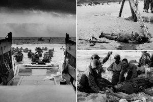 THE MEN LANDED UNDER HEAVY FIRE FROM GUN EMPLACEMENTS OVERLOOKING THE BEACHES, AND THE SHORE WAS MINED AND COVERED WITH OBSTACLES SUCH AS WOODEN STAKES, METAL TRIPODS, AND BARBED WIRE, MAKING THE WORK OF THE BEACH-CLEARING TEAMS DIFFICULT AND DANGEROUS. THE HIGHEST NUMBER OF CASUALTIES WAS AT OMAHA, WITH ITS HIGH CLIFFS.